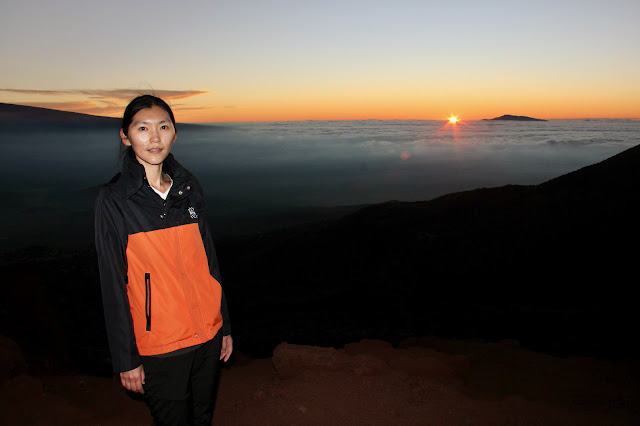 开到游客中心的时候马上就要日落了,我们赶紧换了厚衣服爬上对面的Pu'u Kalepeamoa小山看日落。这里比周围高很多,所以是在云层上面,太阳也是落到云海里。